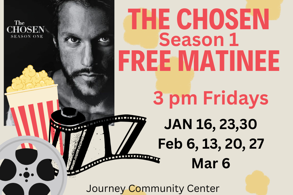 Join your neighbors to watch The Chosen from the beginning. This season we are showing Season 1 as a matinee with fresh popcorn! Please join the fun!